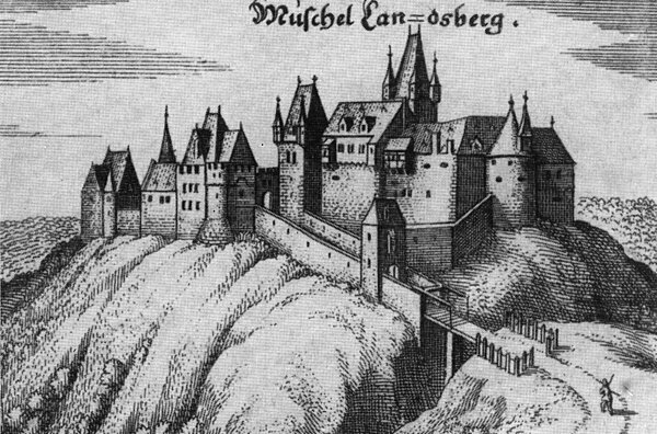 Die Burg Landsberg ist eine Burgruine im Ort Obermoschel im Donnersbergkreis. Erbaut wurde sie im 12. Jahrhundert durch den Grafen des Nahegau Emich I. Die erste urkundliche Erwähnung stammt aus dem Jahr 1255. [Anm. 1] Lange Zeit diente die Moschellandsburg nach ihrem Aus- und Umbau unter der Herrschaft von Pfalz-Zweibrücken als Renaissanceschloss und war in ihrer Geschichte mehreren Belagerungen durch feindliche Armeen ausgesetzt. [Anm. 2]
