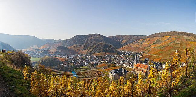 Die Kulturlandschaft des Oberen Mittelrheintals erstreckt sich auf etwa 65 Kilometern entlang des Mittelrheins, der sich zwischen Bingen und Koblenz durch das Rheinische Schiefergebirge schlängelt. Seit 2002 ist dieses Engtal, das seit dem 19. Jahrhundert Inbegriff der romantischen Rheinlandschaft ist, UNESCO-Weltkulturerbe – nicht zuletzt aufgrund seiner Weine. [Anm. 1] Das größte zusammenhängende Weinbaugebiet des Mittelrheins liegt am Bopparder Hamm, der größten Rheinschleife, nahe der Stadt Boppard. Es umfasst rund 75 Hektar Rebfläche, auf der vor allem Riesling angebaut wird. Wein wurde dort wohl schon zur Römerzeit kultiviert – belegbar ist der Weinbau am Mittelrhein aber erst ab dem Frühmittelalter. [Anm. 2] Bis ins 13. Jahrhundert breitete sich der Weinbau immer weiter aus, insbesondere auf den seitdem terrassierten Steilhängen des Engtals. [Anm. 3]