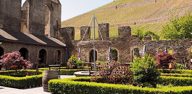 Die im Kloster St. Irminen erhaltene Architektur nahmen die Vereinigten Hospitien in ihr weinwirtschaftliches Programm auf. Der Gewölbesaal der einstigen Königspfalz ist heute Teil des ältesten Weinkellers Deutschlands. Unterhalb des Römersaals wird in diesem frühmittelalterlichen Kreuzgratgewölbe jede Weinprobe zum Erlebnis. [Anm. 5]
